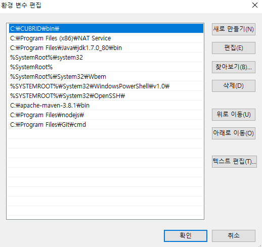 java -version 으로 확인 해보면 open jdk 1.8이 나오는 경우 환경 변수 설정 화면의 순서를